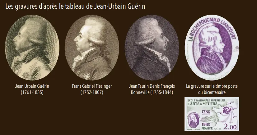 Le buste du duc François de La Rochefoucauld-Liancourt, tel qu’il était présenté sur la médaille est inspiré d’un portrait du duc par Jean-Urbain Guérin au XVIIIème Siècle. De tous les portraits du duc c’est celui qui est le plus proche dans le temps de la création de l’École : il date de 1789 soit 9 ans seulement après la création de l’École. Ce même portrait avait servi de modèle pour divers graveurs comme Franz Gabriel Fiesinger qui avait gravé les portraits de 22 députés de l’Assemblée Nationale de 1789. Ce même portrait avait aussi servi de modèle pour le buste du duc sur la médaille d’Henri Guinier (1867-1927), mais avec un rendu beaucoup plus fin et réaliste que sur la médaille actuelle. Nous avons demandé au graveur de se rapprocher du rendu de la médaille d’Henri Guinier pour ce buste. Henri Guinier était un Gadzarts (Ch.1883), comme son frère jumeau Édouard Guinier (Ch.1883), mais aussi leur père Simon Guinier (Ch.1836) et leur oncle Nicolas Guinier (Ch.1838). Immédiatement après sa sortie de l’École des Arts et Métiers en 1886, Henri Guinier a suivi l’enseignement de l’académie Julian puis des Beaux Arts en 1887. Il a obtenu le second Grand Prix de Rome en 1896 puis une médaille d’or au Salon de 1898. Un grand tableau d’Henri Guinier, “Un pardon en Finistère”, orne la cage d’escalier de l’hôtel des Arts et Métiers à Iéna (voir le numéro de septembre 2023 d’Arts et Métiers Mag).