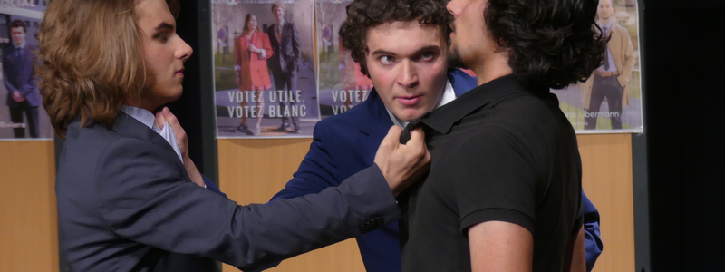 « Cette année, sur le Campus d’Angers, nous avons monté une pièce de théâtre avec huit élèves de deuxième année, une comédienne, cinq comédiens et deux régisseurs. Sans sélection, sur aucun critère, avec ou sans expérience, nous avons donc créé cette troupe avec un objectif : jouer dans un théâtre, un vrai, à la fin de l’année, avec l’idée d’un grand respect pour le public qui devrait y trouver son compte en venant nous voir.